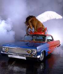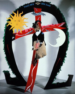 The seamy surroundings and his use of unconventional materials and taxidermy animals — such as the crucified ram in "Vegas Jesus" — engendered a violent, sometimes disturbing, aesthetic in his work. But the violent overtones were often countered with a whimsical humor and mythical grandeur.